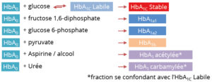 La glycation est un processus lent et irréversible. Toute modification de la durée de vie des hématies va donc avoir un impact sur la valeur d’HbA1c.