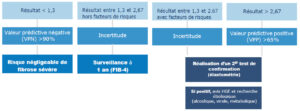 Il s’agit d’un score simple basé sur un algorithme combinant l’âge du patient, la mesure de l’activité des transaminases hépatiques (ALAT/ASAT) et la numération des plaquettes.