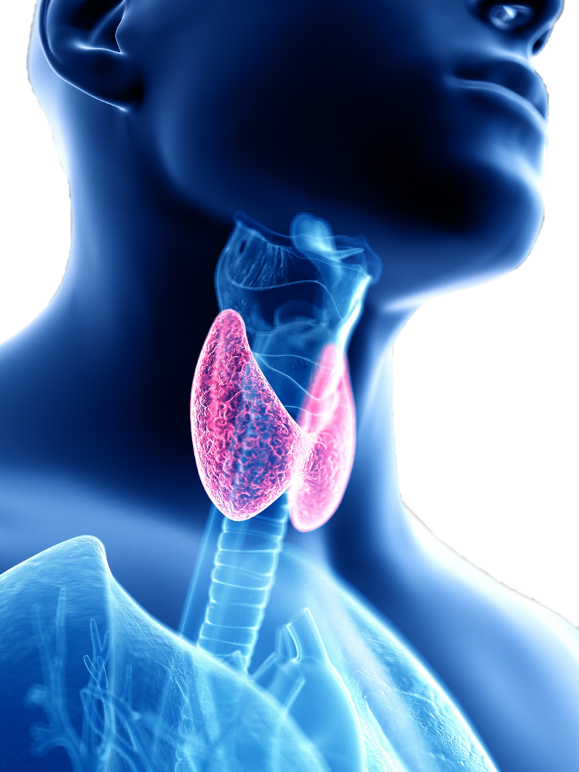 Les problèmes de thyroïde peuvent être liés soit à une atteinte de la glande thyroïde elle-même, soit des glandes qui la commandent et qui sont situées dans le cerveau : l’hypothalamus et l’hypophyse.